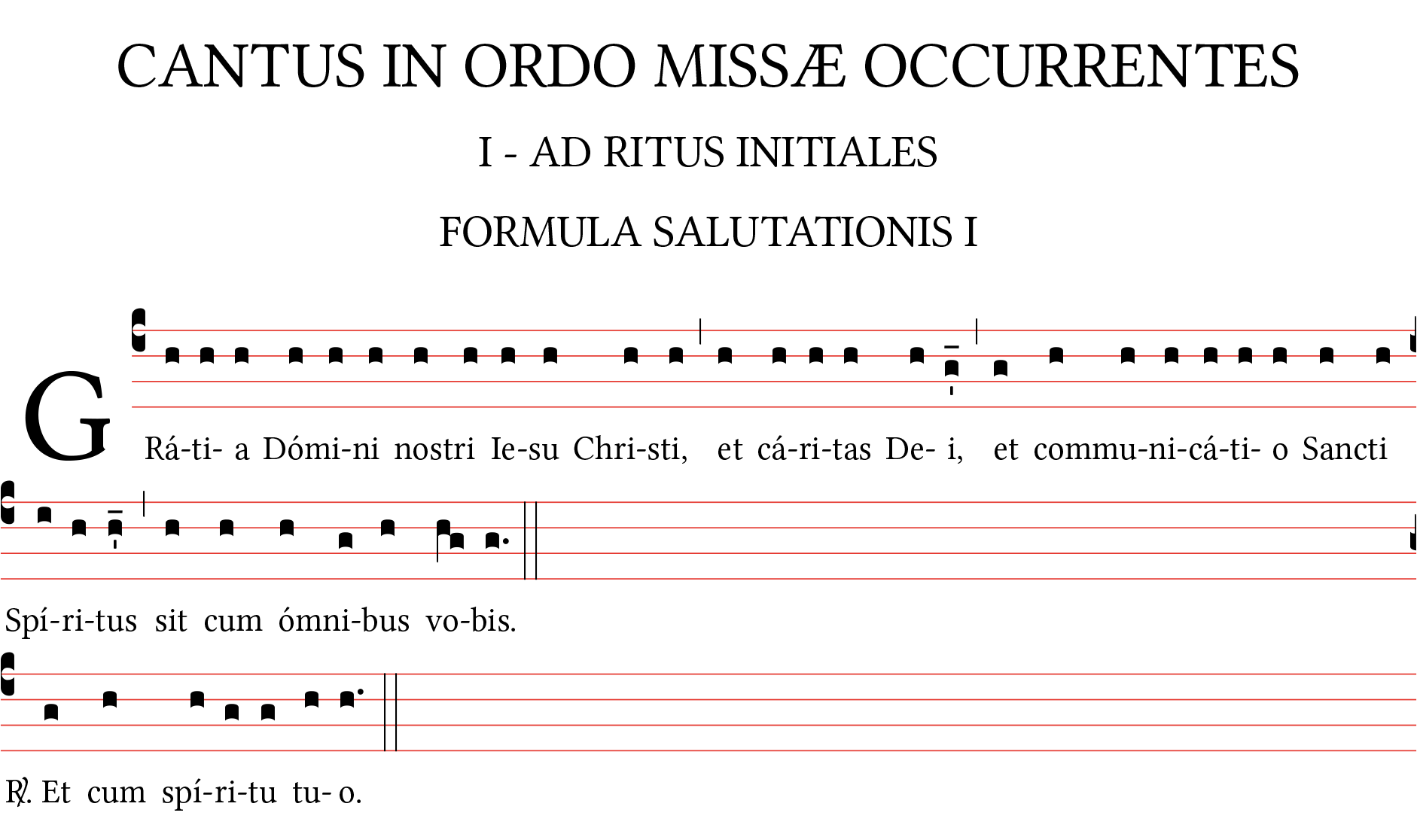 Common tones: FORMULA SALUTATIONIS I (GRATIA DOMINI...). Square notation on A4 sheet.